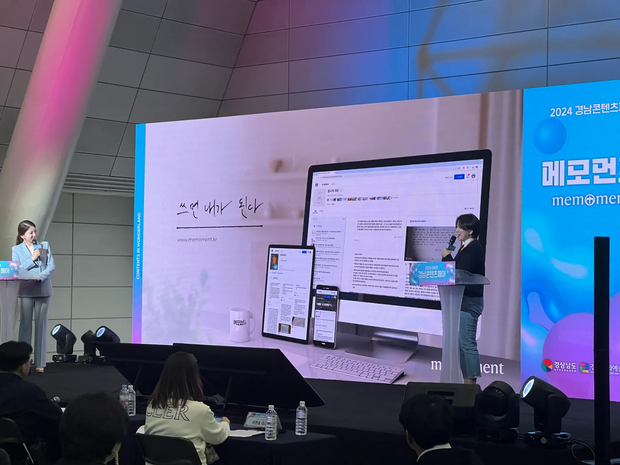 2024년 경남콘텐츠페어에 메모먼트가 참가하여 많은 시민들과 만났습니다. 이번 행사에는 경남 지역의 다양한 콘텐츠 기업과 스타트업들이 대거 참여해 각자의 서비스를 소개하며 현장을 뜨겁게 달구었는데요, 메모먼트 역시 많은 주목을 받았습니다.